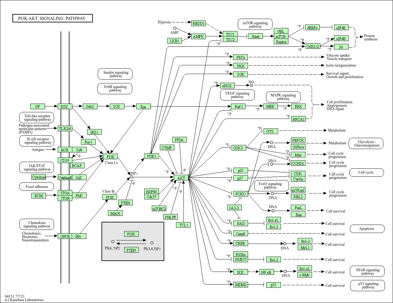 125467750 (EFNA4-EFNA3), 1435 (CSF1), 1942 (EFNA1), 1943 (EFNA2), 1944 (EFNA3), 1945 (EFNA4), 1946 (EFNA5), 1950 (EGF), 2069 (EREG), 2246 (FGF1), 2247 (FGF2), 2248 (FGF3), 2249 (FGF4), 2250 (FGF5), 2251 (FGF6), 2252 (FGF7), 2253 (FGF8), 2254 (FGF9), 2255 (FGF10), 2277 (VEGFD), 2323 (FLT3LG), 26281 (FGF20), 26291 (FGF21), 2668 (GDNF), 27006 (FGF22), 284 (ANGPT1), 285 (ANGPT2), 3082 (HGF), 3479 (IGF1), 3481 (IGF2), 3630 (INS), 374 (AREG), 4254 (KITLG), 4803 (NGF), 4902 (NRTN), 4908 (NTF3), 4909 (NTF4), 51378 (ANGPT4), 5154 (PDGFA), 5155 (PDGFB), 5228 (PGF), 56034 (PDGFC), 5623 (PSPN), 627 (BDNF), 7039 (TGFA), 7422 (VEGFA), 7423 (VEGFB), 7424 (VEGFC), 80310 (PDGFD), 8074 (FGF23), 8817 (FGF18), 8822 (FGF17), 8823 (FGF16), 9048 (ARTN), 9965 (FGF19)1436 (CSF1R), 1956 (EGFR), 1969 (EPHA2), 2064 (ERBB2), 2065 (ERBB3), 2066 (ERBB4), 2260 (FGFR1), 2261 (FGFR3), 2263 (FGFR2), 2264 (FGFR4), 2321 (FLT1), 2322 (FLT3), 2324 (FLT4), 3480 (IGF1R), 3643 (INSR), 3791 (KDR), 3815 (KIT), 4233 (MET), 4804 (NGFR), 4914 (NTRK1), 4915 (NTRK2), 5156 (PDGFRA), 5159 (PDGFRB), 5979 (RET), 7010 (TEK)2885 (GRB2)6654 (SOS1), 6655 (SOS2)3265 (HRAS), 3845 (KRAS), 4893 (NRAS)1440 (CSF3), 1442 (CSH1), 1443 (CSH2), 1444 (CSHL1), 2056 (EPO), 2688 (GH1), 2689 (GH2), 3439 (IFNA1), 3440 (IFNA2), 3441 (IFNA4), 3442 (IFNA5), 3443 (IFNA6), 3444 (IFNA7), 3445 (IFNA8), 3446 (IFNA10), 3447 (IFNA13), 3448 (IFNA14), 3449 (IFNA16), 3451 (IFNA17), 3452 (IFNA21), 3456 (IFNB1), 3558 (IL2), 3562 (IL3), 3565 (IL4), 3569 (IL6), 3574 (IL7), 5008 (OSM), 5617 (PRL)10319 (LAMC3), 1101 (CHAD), 1277 (COL1A1), 1278 (COL1A2), 1280 (COL2A1), 1282 (COL4A1), 1284 (COL4A2), 1285 (COL4A3), 1286 (COL4A4), 1287 (COL4A5), 1288 (COL4A6), 1291 (COL6A1), 1292 (COL6A2), 1293 (COL6A3), 1297 (COL9A1), 1298 (COL9A2), 1299 (COL9A3), 1311 (COMP), 131873 (COL6A6), 22798 (LAMB4), 2335 (FN1), 256076 (COL6A5), 284217 (LAMA1), 3371 (TNC), 3381 (IBSP), 3908 (LAMA2), 3909 (LAMA3), 3910 (LAMA4), 3911 (LAMA5), 3912 (LAMB1), 3913 (LAMB2), 3914 (LAMB3), 3915 (LAMC1), 3918 (LAMC2), 5649 (RELN), 63923 (TNN), 6696 (SPP1), 7057 (THBS1), 7058 (THBS2), 7059 (THBS3), 7060 (THBS4), 7143 (TNR), 7148 (TNXB), 7448 (VTN), 7450 (VWF)7097 (TLR2), 7099 (TLR4)102723407 (IGH)930 (CD19)1441 (CSF3R), 2057 (EPOR), 2690 (GHR), 3454 (IFNAR1), 3455 (IFNAR2), 3559 (IL2RA), 3560 (IL2RB), 3561 (IL2RG), 3563 (IL3RA), 3566 (IL4R), 3570 (IL6R), 3575 (IL7R), 5618 (PRLR), 9180 (OSMR)22801 (ITGA11), 3655 (ITGA6), 3672 (ITGA1), 3673 (ITGA2), 3674 (ITGA2B), 3675 (ITGA3), 3676 (ITGA4), 3678 (ITGA5), 3679 (ITGA7), 3680 (ITGA9), 3685 (ITGAV), 8515 (ITGA10), 8516 (ITGA8)3688 (ITGB1), 3690 (ITGB3), 3691 (ITGB4), 3693 (ITGB5), 3694 (ITGB6), 3695 (ITGB7), 3696 (ITGB8)10161 (LPAR6), 1128 (CHRM1), 1129 (CHRM2), 1902 (LPAR1), 2149 (F2R), 23566 (LPAR3), 2846 (LPAR4), 57121 (LPAR5), 9170 (LPAR2)10681 (GNB5), 2782 (GNB1), 2783 (GNB2), 2784 (GNB3), 2785 (GNG3), 2786 (GNG4), 2787 (GNG5), 2788 (GNG7), 2790 (GNG10), 2791 (GNG11), 2792 (GNGT1), 2793 (GNGT2), 51764 (GNG13), 54331 (GNG2), 55970 (GNG12), 59345 (GNB4), 94235 (GNG8)5747 (PTK2)3716 (JAK1), 3717 (JAK2), 3718 (JAK3)118788 (PIK3AP1)6850 (SYK)5879 (RAC1)3667 (IRS1)110117499 (P3R3URF-PIK3R3), 5290 (PIK3CA), 5291 (PIK3CB), 5293 (PIK3CD), 5295 (PIK3R1), 5296 (PIK3R2), 8503 (PIK3R3)146850 (PIK3R6), 23533 (PIK3R5), 5294 (PIK3CG)9223 (MAGI1), 9863 (MAGI2)5728 (PTEN)110117499 (P3R3URF-PIK3R3), 146850 (PIK3R6), 23533 (PIK3R5), 5290 (PIK3CA), 5291 (PIK3CB), 5293 (PIK3CD), 5294 (PIK3CG), 5295 (PIK3R1), 5296 (PIK3R2), 8503 (PIK3R3)5728 (PTEN)5170 (PDPK1)3320 (HSP90AA1), 3326 (HSP90AB1), 7184 (HSP90B1)11140 (CDC37)200186 (CRTC2)23035 (PHLPP2), 23239 (PHLPP1)4515 (MTCP1), 8115 (TCL1A), 9623 (TCL1B)117145 (THEM4)28227 (PPP2R3B), 55012 (PPP2R3C), 5515 (PPP2CA), 5516 (PPP2CB), 5518 (PPP2R1A), 5519 (PPP2R1B), 5520 (PPP2R2A), 5521 (PPP2R2B), 5522 (PPP2R2C), 5523 (PPP2R3A), 5525 (PPP2R5A), 5526 (PPP2R5B), 5527 (PPP2R5C), 5528 (PPP2R5D), 5529 (PPP2R5E), 55844 (PPP2R2D)10000 (AKT3), 207 (AKT1), 208 (AKT2)6794 (STK11)54541 (DDIT4)5562 (PRKAA1), 5563 (PRKAA2)7248 (TSC1)7249 (TSC2)6009 (RHEB)64223 (MLST8)2475 (MTOR)57521 (RPTOR)1978 (EIF4EBP1)6198 (RPS6KB1), 6199 (RPS6KB2)1977 (EIF4E), 253314 (EIF4E1B), 9470 (EIF4E2)1975 (EIF4B)6194 (RPS6)5578 (PRKCA)29941 (PKN3), 5585 (PKN1), 5586 (PKN2)100533105 (C8orf44-SGK3), 10110 (SGK2), 23678 (SGK3), 6446 (SGK1)4846 (NOS3)5894 (RAF1)5604 (MAP2K1), 5605 (MAP2K2)5594 (MAPK1), 5595 (MAPK3)672 (BRCA1)2932 (GSK3B)2997 (GYS1), 2998 (GYS2)5105 (PCK1), 5106 (PCK2)2538 (G6PC1), 57818 (G6PC2), 92579 (G6PC3)4609 (MYC)595 (CCND1)1026 (CDKN1A)1027 (CDKN1B)1017 (CDK2), 1019 (CDK4), 1021 (CDK6)595 (CCND1), 894 (CCND2), 896 (CCND3), 898 (CCNE1), 9134 (CCNE2)1027 (CDKN1B)5934 (RBL2)356 (FASLG)10018 (BCL2L11)2309 (FOXO3)10971 (YWHAQ), 7529 (YWHAB), 7531 (YWHAE), 7532 (YWHAG), 7533 (YWHAH), 7534 (YWHAZ)572 (BAD)598 (BCL2L1)596 (BCL2)842 (CASP9)596 (BCL2)4170 (MCL1)10488 (CREB3), 1385 (CREB1), 1386 (ATF2), 1388 (ATF6B), 148327 (CREB3L4), 468 (ATF4), 64764 (CREB3L2), 84699 (CREB3L3), 90993 (CREB3L1), 9586 (CREB5)6256 (RXRA)3164 (NR4A1)596 (BCL2)1147 (CHUK), 3551 (IKBKB), 8517 (IKBKG)4790 (NFKB1), 5970 (RELA)598 (BCL2L1)4602 (MYB)4193 (MDM2)7157 (TP53)